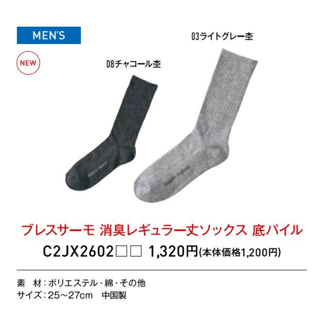 ニオイにくい!あったかブレスサーモ消臭ソックス。