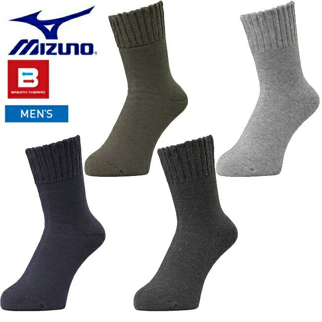 2022 秋 冬 発熱素材のブレスサーモ採用 ミズノ mizuno 【C2JX2603】ブレスサーモ ゆるぬくソックス 裏起毛 メンズ