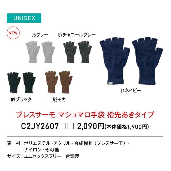 2022 秋 冬 発熱素材のブレスサーモ採用 ミズノ mizuno 【C2JY2607】ブレスサーモ マシュマロ手袋指先あきタイプ ユニセックス