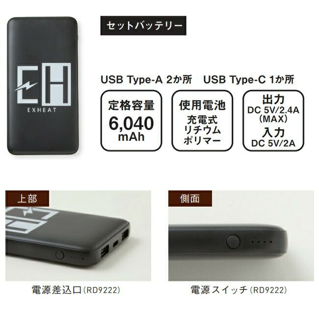 リチウムイオンバッテリーのUSBコネクタへ接続可能。