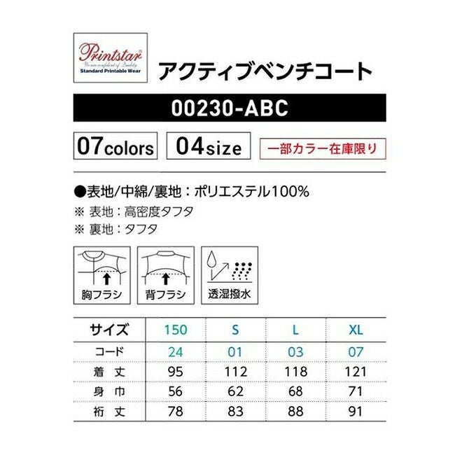 他の画像を見る 真冬の寒さもなんのその最強の保温性を誇る一着 アクティブ ベンチコート Printstar プリントスター 00230 定価 ¥ 9,020 販売価格 ¥ 9,045 税込 カートに入れる お気に入りに登録する