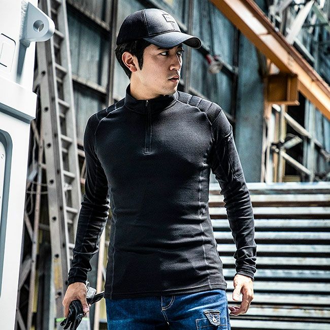 両面起毛スタイルと、裏面起毛スタイルと2種類の生地が採用されたコンプレッションシリーズ。不快なパチパチ感を抑える制電糸を使用。搬送時の負担を軽減させるための肩パッドが採用されている。ごろつき感のないフラットシーマで着心地の良さを向上させ、吸汗・乾燥にも優れたストレッチ性のある生地で動きやすさをサポートする。脇と股には臭いを抑える消臭テープ付き。春夏用コンプレッションの着心地や動きやすさをそのまま秋冬用としてデザインした仕様。