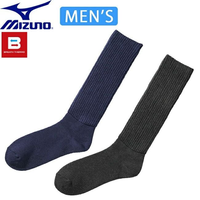 メンズ 発熱素材 ミズノ mizuno ブレスサーモ ゆるぬく ハイソックス 【C2JX1602】