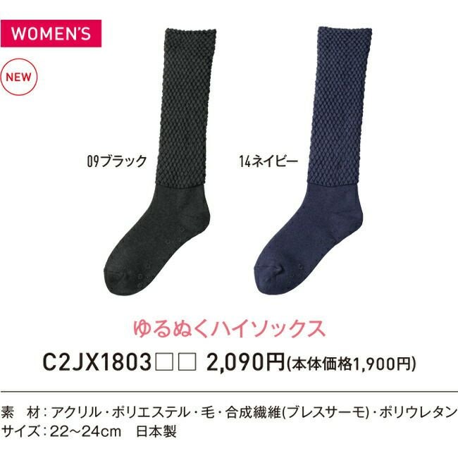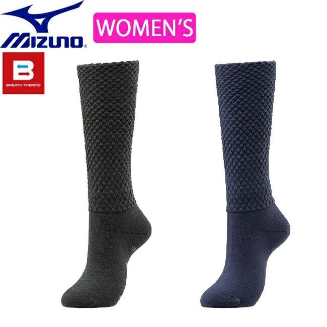レディース 発熱素材 ミズノ mizuno ブレスサーモ ゆるぬく ハイソックス 【C2JX1803】