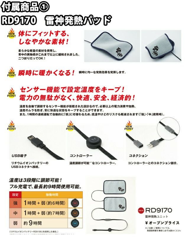 他の画像を見る おしゃれ で 暖かい SUN-S 雷神服 発熱 ウェア 新作 【送料無料】 発熱体&バッテリー付きサンエス SUN-S 防寒 雷神服 【BO32160】 雷神ウォームベスト 販売価格 ¥ 22,110 税込 カートに入れる お気に入りに登録する