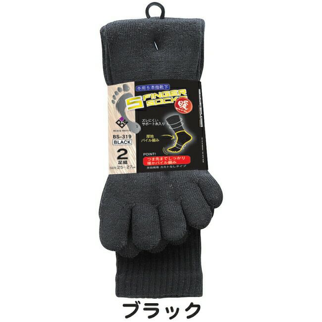 おたふく 指までパイルソックス 5本指 カカトなし 2足組 BS-319