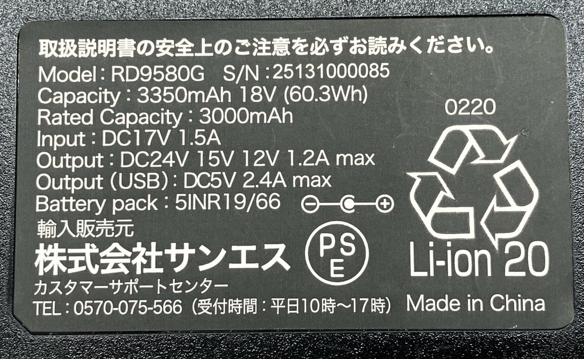 付属品2 RD9580G 24V グローバルモデル バッテリー