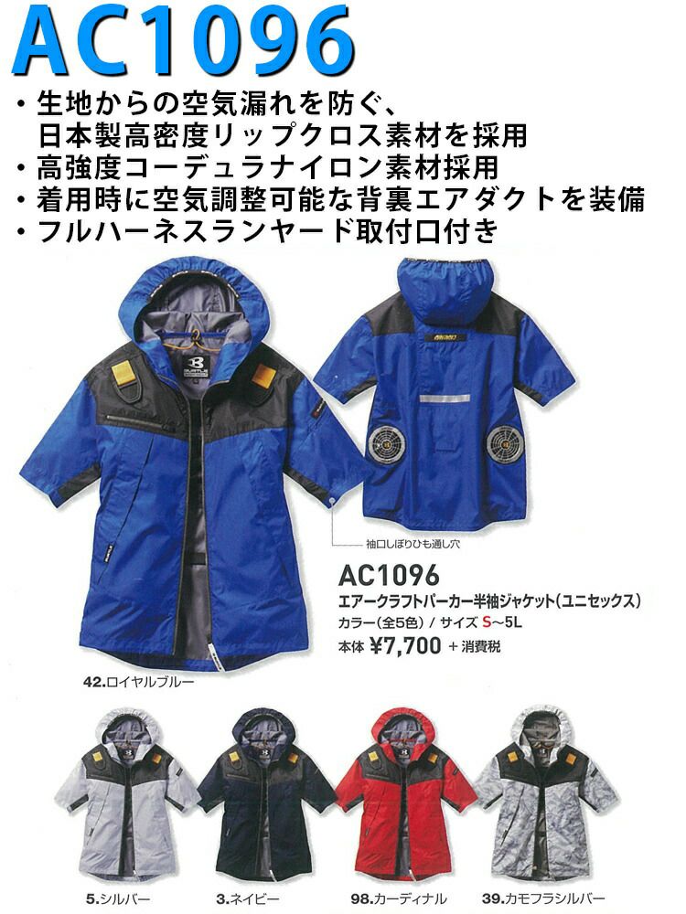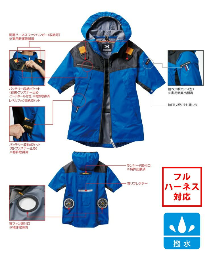 遮熱 高視認 リフレクター フルハーネス 対応 紫外線 赤外線 UVカット ランヤード 取付口付き 安全帯 フックハンガー ヘルメット対応 大型フード ユニセックス モデル バートル BURTLE 空調服 【AC1096】 エアークラフト パーカー 半袖 ジャケット