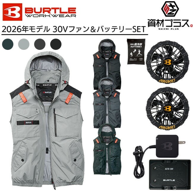 【2026年 黒ファン+30Vバッテリーセット】バートル BURTLE 空調ウェア EFウェア 【AC1154】 ベストタイプ フード付き 超冷却保冷剤付き