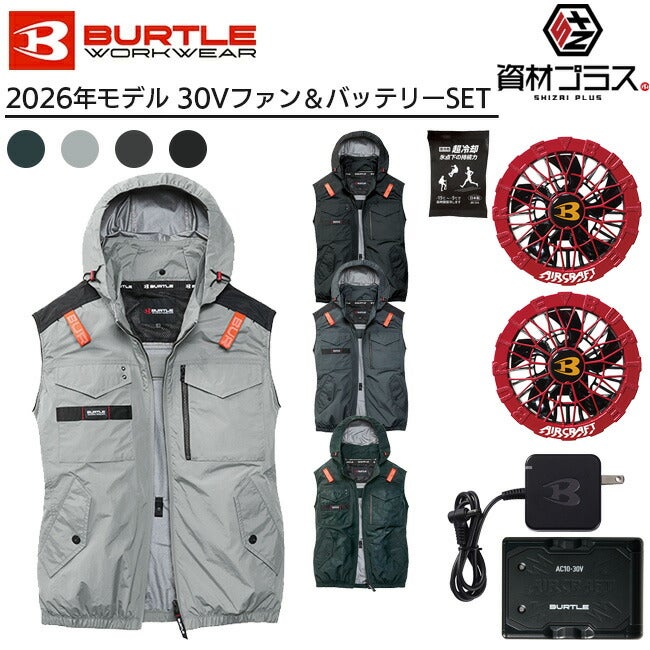 【2026年 スパイダーレッドファン+30Vバッテリーセット】バートル BURTLE 空調ウェア EFウェア 【AC1154】 ベストタイプ フード付き 超冷却保冷剤付き