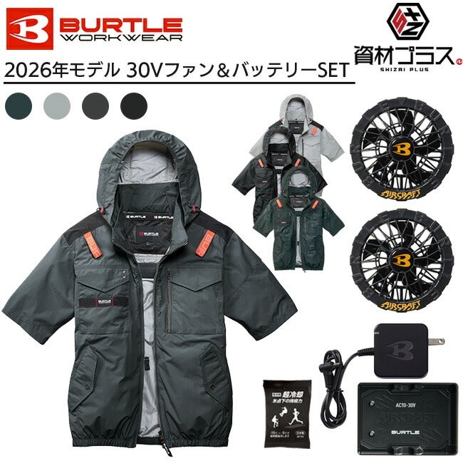 【2026年 黒ファン+30Vバッテリーセット】バートル BURTLE 空調ウェア EFウェア 【AC1156】 半袖 フード付き 超冷却保冷剤付き