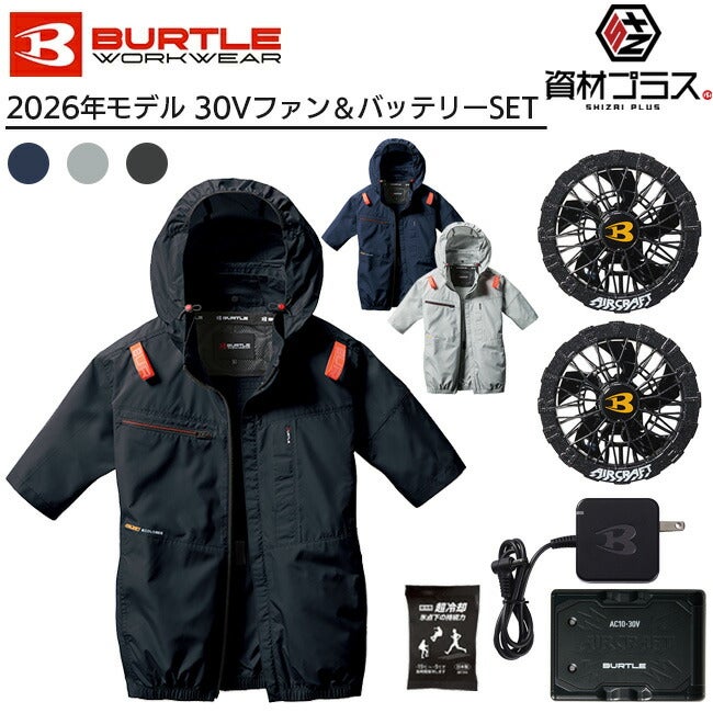 バートル 2026 2026年 新モデル 最新 最新モデル 風がボディ全体を駆け巡るサイドファン取付設計モデル 【2026年 アーバンブラックファン+30Vバッテリーセット】バートル BURTLE 空調ウェア EFウェア 【AC2056】 半袖 超冷却保冷剤付き
