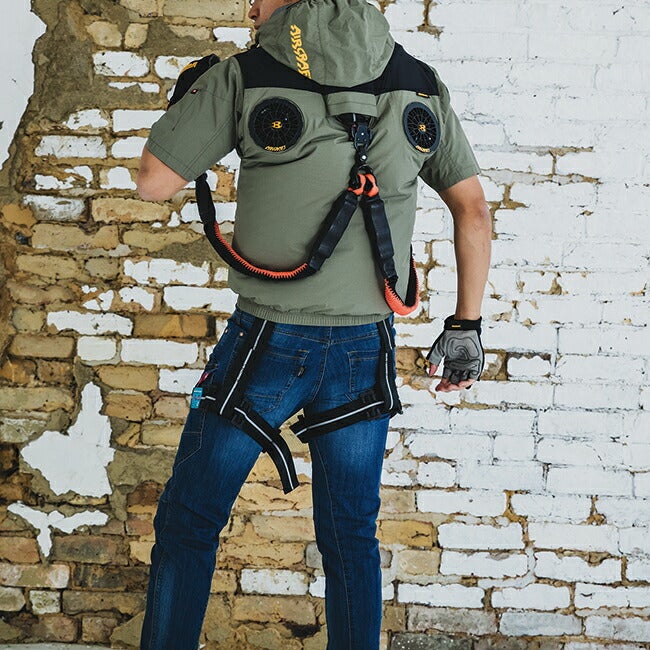 ★ヘルメット収納フード(着脱可能)、フックハンガー、背ランヤードホールを配備しフルハーネスに完全対応