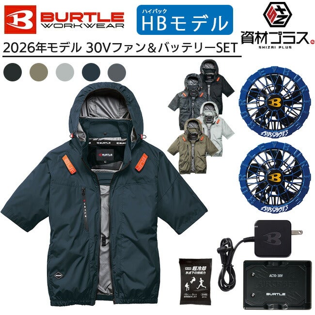 バートル 2026 2026年 新モデル 最新モデル 軽量、撥水性、アルミC加工による遮熱性(-8'C)を備えたソフトシェル素材 【2026年 オーシャンブルーファン+30Vバッテリーセット】バートル BURTLE 空調ウェア EFウェア 【AC2096HB】 ハイバック 半袖 ブルゾン 超冷却保冷剤付き