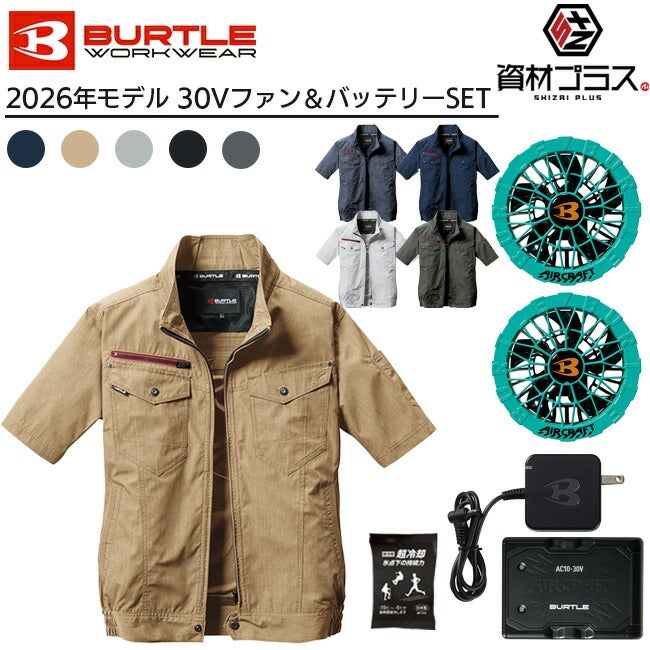 レッド ファスナー が 魅力 ! 空気 の 漏れ を 防ぐ 日本製 T/Cウエザークロス を 仕様 男女 ユニセックス モデル 【2026年 マーリンファン+30Vバッテリーセット】バートル BURTLE 空調ウェア EFウェア 【AC7146】 半袖 ブルゾン 超冷却保冷剤付き