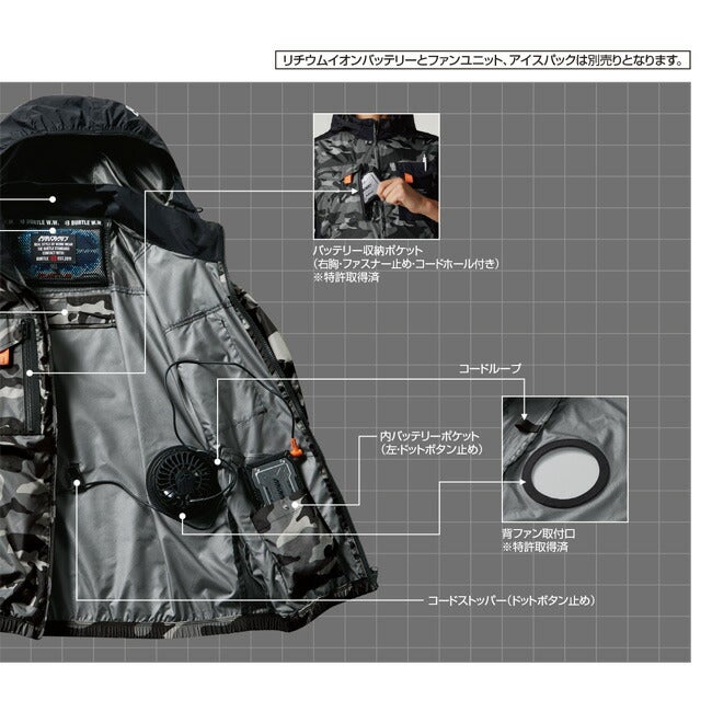 他の画像を見る ミリタリーテイストのディテールにバートルらしいギミック 【2026年 オーシャンブルーファン+30Vバッテリーセット】バートル BURTLE 空調ウェア EFウェア 【AC1154】 ベストタイプ フード付き 超冷却保冷剤付き 定価 ¥ 30,160 販売価格 ¥ 30,160 税込 在庫切れ カートに入れる お気に入りに登録する