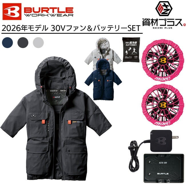 他の画像を見る ミリタリーテイストのディテールにバートルらしいギミック 【2026年 オーシャンブルーファン+30Vバッテリーセット】バートル BURTLE 空調ウェア EFウェア 【AC1156】 半袖 フード付き 超冷却保冷剤付き 定価 ¥ 30,463 販売価格 ¥ 30,463 税込 在庫切れ カートに入れる お気に入りに登録する