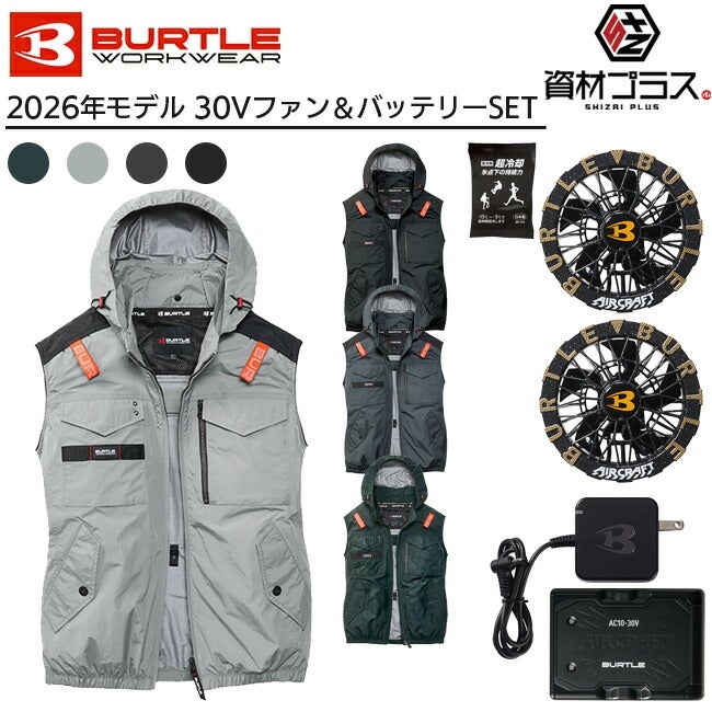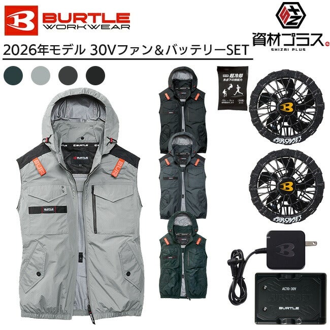 他の画像を見る ミリタリーテイストのディテールにバートルらしいギミック 【2026年 アーバンブラックファン+30Vバッテリーセット】バートル BURTLE 空調ウェア EFウェア 【AC1154】 ベストタイプ フード付き 超冷却保冷剤付き 定価 ¥ 30,160 販売価格 ¥ 30,160 税込 カートに入れる お気に入りに登録する