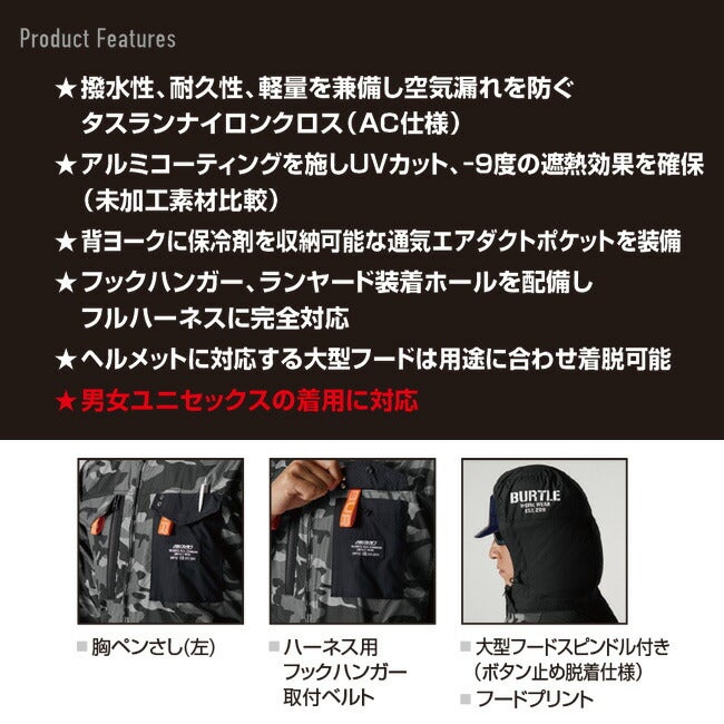 他の画像を見る ミリタリーテイストのディテールにバートルらしいギミック 【2026年 マーリンファン+30Vバッテリーセット】バートル BURTLE 空調ウェア EFウェア 【AC1156】 半袖 フード付き 超冷却保冷剤付き 定価 ¥ 30,463 販売価格 ¥ 30,463 税込 カートに入れる お気に入りに登録する