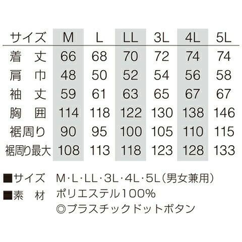 サイズ  : M・L・LL・3L・4L・5L(男女兼用)