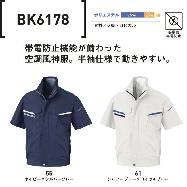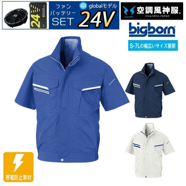 帯電 防止 機能 が 備わった 空調風神服 半袖 仕様 で 動き やすい 【24V 2025年 GLOBALバッテリー&ファン付き】ビッグボーン bigborn 空調風神服 【BK6178】 空調 半袖 ブルゾン ジャケット | サンエス SUN-S 年 新モデル 新色 夏 猛暑 熱中症 涼しい 空調 おしゃれ カジュアル かっこいい 帯電 静電気 防止 大きいサイズ