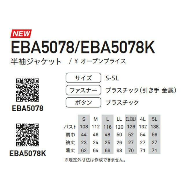 サイズ:S / M / L / LL / EL(3L) / 4L / 5L