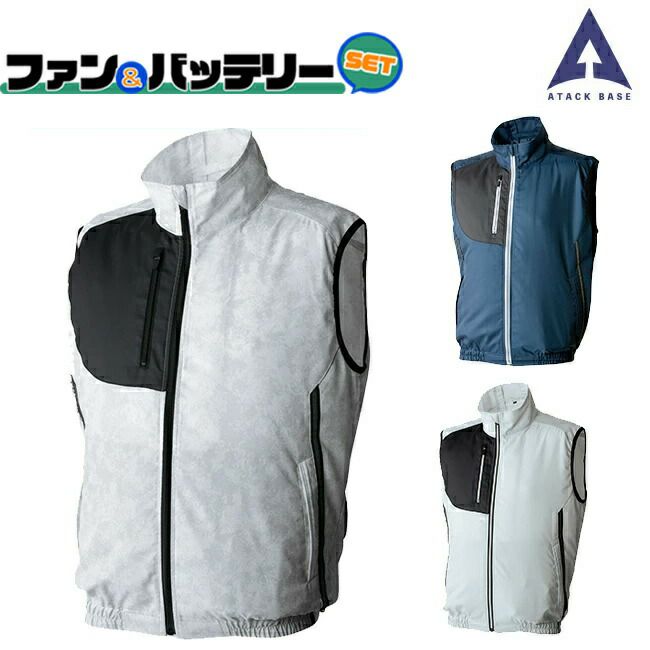 2色 使い で 普段着 にも 合わせやすい エッジ の 効いた カジュアル ベスト 【2022年ファン&バッテリーセット付】アタックベース 空調風神服【The tough 060】 極涼 ベスト