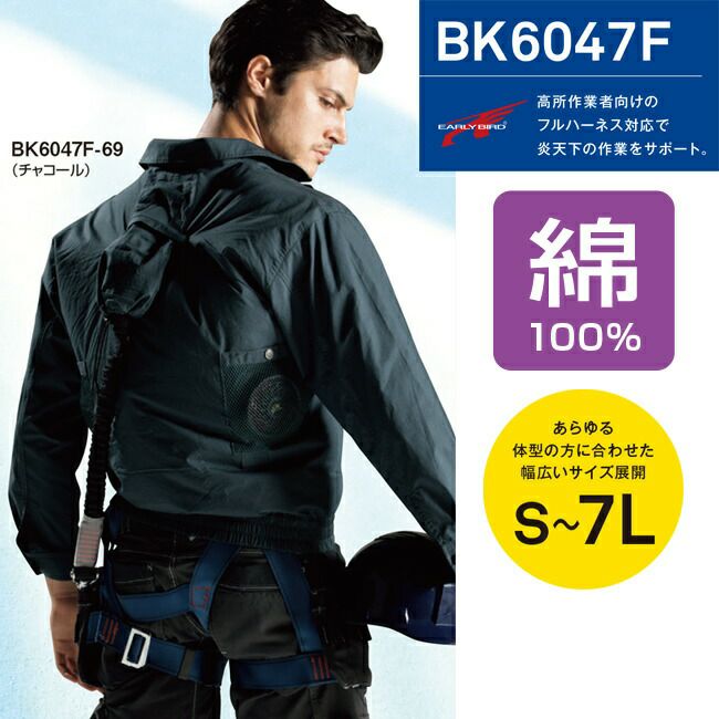 高所 作業 向け の フルハーネス 対応 で 炎天下 の 作業 を サポート 【2022年ファン&バッテリーセット付】Bigborn 空調風神服BK6047F フルハーネス 対応 長袖 ジャケット