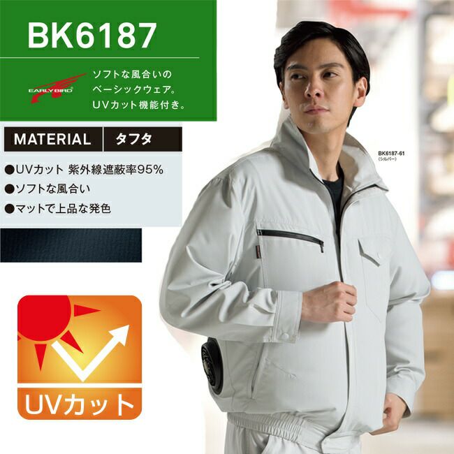 ソフト な 風合い の ベーシック ウェア UV カット 機能 付き 【2022年ファン&バッテリーセット付】Bigborn 空調風神服BK6187 長袖 ジャケット