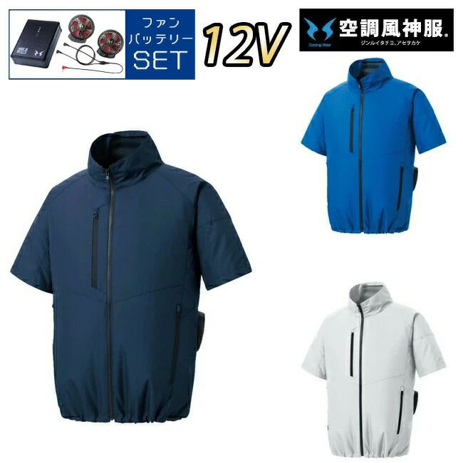 【12Vスターターキット ファン&バッテリー付き】空調風神服 sun-s サンエス 空調ウェア エコ半袖ブルゾン KF92420