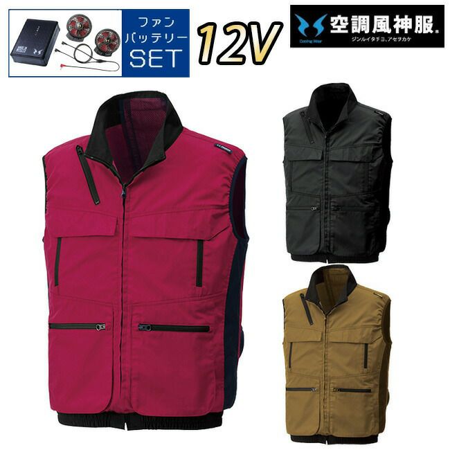 アクティブ な スタイル に バッチリ はまる 、 マルチ ポケット ベスト 【12Vスターターキット ファン&バッテリー付き】サンエス SUN-S 空調風神服 KF92132 空調 ベスト KU92132 | 夏 涼しい クール 空調 ウェア 服 作業着 夏場 現場 作業 熱中症 対策 おしゃれ かっこいい カジュアル メンズ レディース フルセット