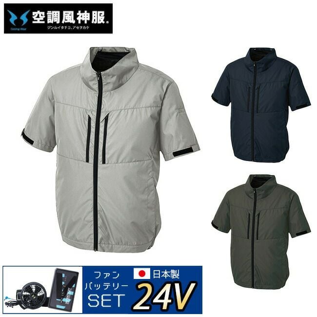 【24V 2025年 日本製バッテリー&ファン付き】サンエス SUN-S 空調風神服【KF92510】ハイバック仕様 チタン加工 半袖ブルゾン