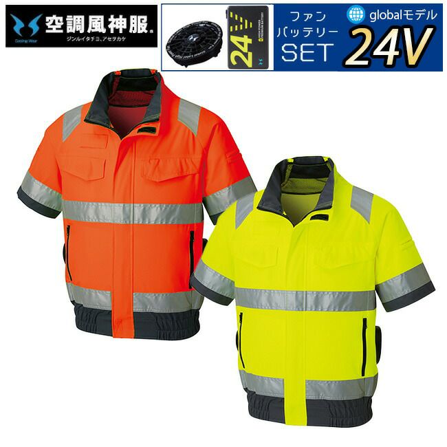 【24V 2025年 GLOBALバッテリー&ファン付き】サンエス SUN-S 空調風神服【KF92520】Hi-Vis半袖ブルゾン