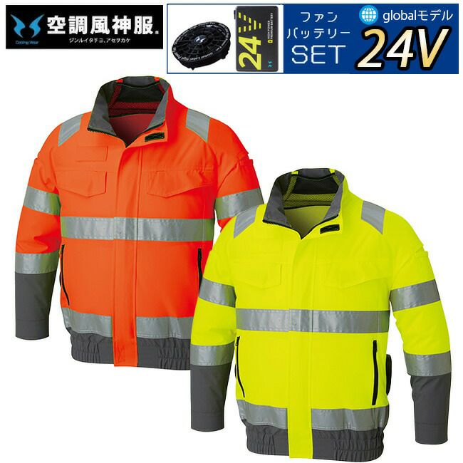【24V 2025年 GLOBALバッテリー&ファン付き】サンエス SUN-S 空調風神服【KF92521】Hi-Vis長袖ブルゾン