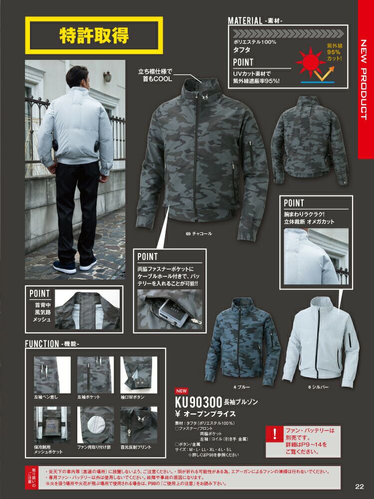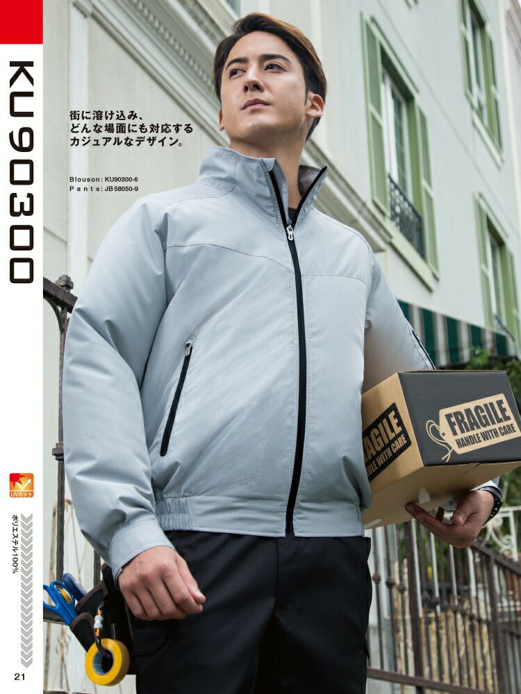 UVカット素材で紫外線遮蔽率95%!ポリエステル100%のタフタ生地風神空調服! サンエス SUN-S 空調 風神服 空調服 KU90300 長袖 ブルゾン ※ファン・バッテリー別売