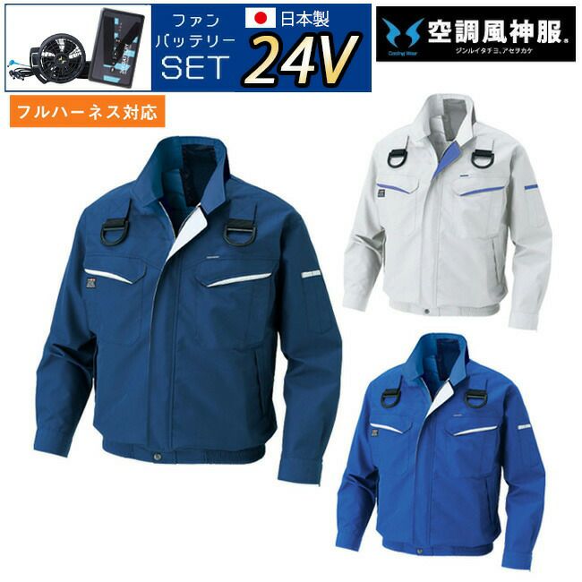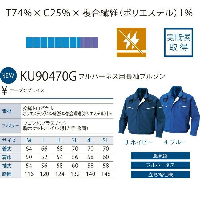 高所 作業 向け の 機能 が 満載 の フルハーネス 仕様 ブルゾン 【24V 2025年 日本製バッテリー&ファン付き】サンエス SUN-S 空調風神服 KF90470G フルハーネス 用 長袖 ブルゾン | 新モデル 新色 メンズ レディース 夏 猛暑 酷暑 熱中症 涼しい 空調 おしゃれ カジュアル かっこいい 高所 フック ハーネス 新基準 対応 KU90470G
