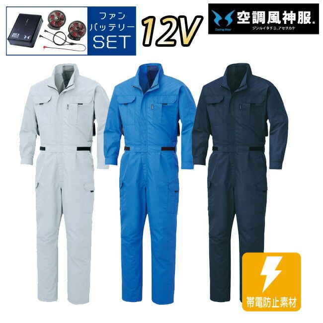 脚 にも 空気 が 巡る つなぎ タイプ の 風神服 【12Vスターターキット ファン&バッテリー付き】サンエス SUN-S 空調風神服 KF92046 つなぎ | 新モデル 新色 UVカット メンズ レディース 夏 猛暑 酷暑 熱中症 涼しい 空調 おしゃれ カジュアル かっこいい つなぎ 上下 セット ロング 制電 ブロード KU92046