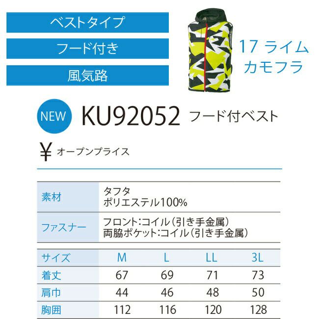 【あす楽対応】スポーティ にも カジュアル にも 着こなし が 楽しめる デザイン サンエス SUN-S 空調風神服 空調服 KU92052 フード付き ベスト ※ ファン バッテリー別売