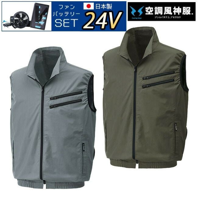 街 にも 映える カジュアル テイスト の ワーク ベスト 【24V 2025年 日本製バッテリー&ファン付き】サンエス SUN-S 空調風神服 KF92102 空調 ベスト KU92102 | 夏 涼しい クール 空調 ウェア 服 作業着 夏場 現場 作業 熱中症 対策 おしゃれ かっこいい カジュアル メンズ レディース フルセット