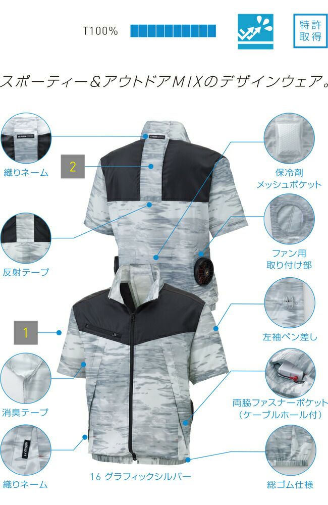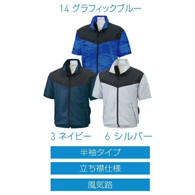 スポーティー & アウトドア MIX の デザイン ウェア 【24V 2025年 GLOBALバッテリー&ファン付き】サンエス SUN-S 空調風神服 KF92160 半袖 ブルゾン KU92160 | 夏 涼しい クール 空調 ウェア 服 作業着 夏場 現場 作業 熱中症 対策 おしゃれ かっこいい カジュアル メンズ レディース フルセット