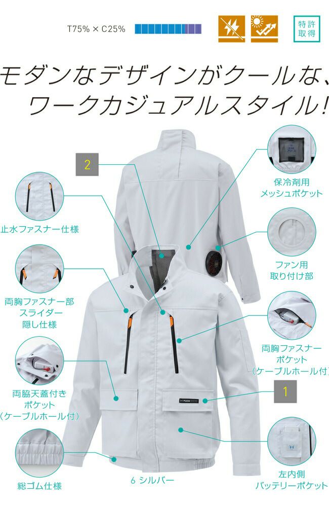 モダン な デザイン が クール な ワーク カジュアル スタイル 【24V 2025年 GLOBALバッテリー&ファン付き】サンエス SUN-S 空調風神服 KF92191 長袖 ブルゾン KU92191 | 夏 涼しい クール 空調 ウェア 服 作業着 夏場 現場 作業 熱中症 対策 おしゃれ かっこいい カジュアル メンズ レディース フルセット