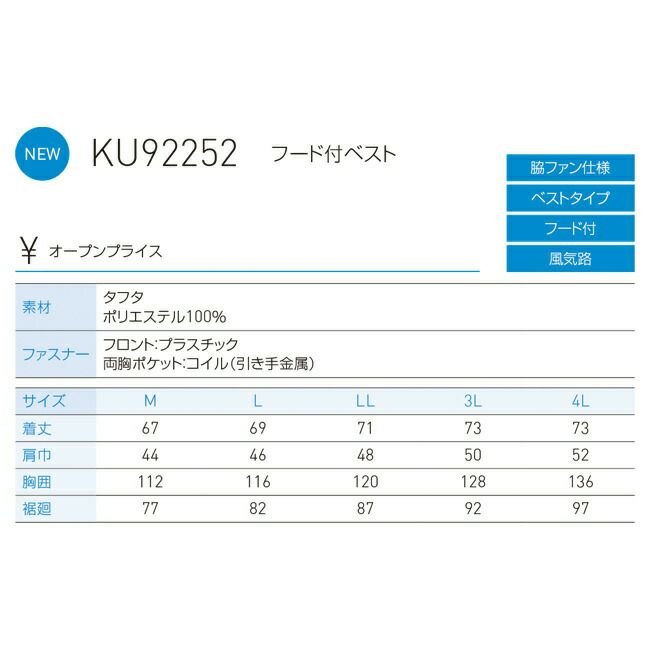 脇ファン仕様 / ベストタイプ / フード付き / 風気路