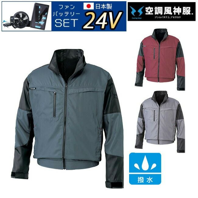 洗練 された ツートーン 切り替え の 欧州 スタイル 【24V 2025年 日本製バッテリー&ファン付き】サンエス SUN-S 空調風神服 KF95900 長袖 ジャケット撥水 | 新モデル 新色 UVカット 胸 ポケット ベスト メッシュ マジック パターン 涼しい 夏 夏用 おしゃれ カジュアル メンズ レディース KU95900