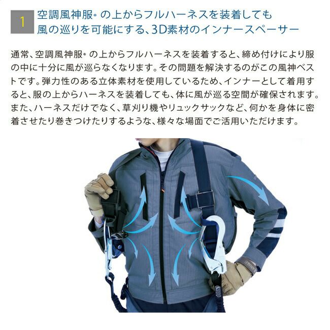 服内 に 通風 スペース を 確保 する フルハーネス 向け インナー サンエス SUN-S 空調風神服 空調服 用 ベスト KU99120 フルハーネス 向け インナー