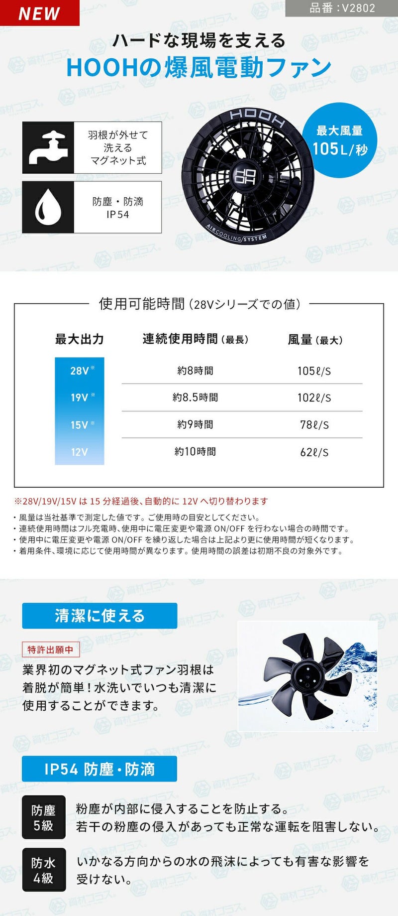 着脱可能なフード付き・サイドファン・フルハーネス対応の仕様で、様々な作業環境にお使いいただけます!