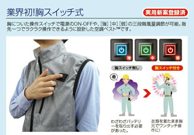 他の画像を見る 空調ベストの胸スイッチタイプが登場! BRAIN ブレイン 胸スイッチ7.4V 裏チタン加工空調ベスト ハーネス対応 フルセット BR-088 販売価格 ¥ 22,155 税込 詳細を見る お気に入りに登録する