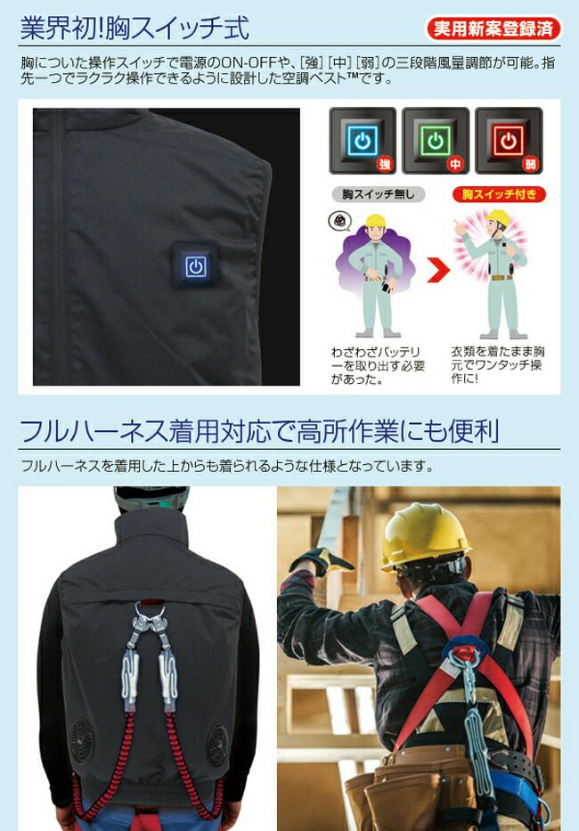 他の画像を見る 空調ベストの胸スイッチタイプが登場! BRAIN ブレイン 胸スイッチ7.4V 空調ベスト ハーネス対応 フルセット BR-060 販売価格 ¥ 21,118 税込 詳細を見る お気に入りに登録する