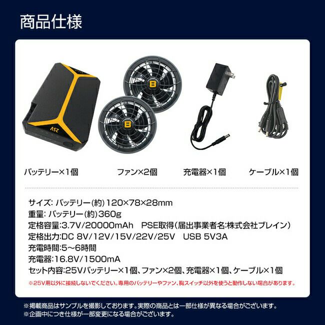 他の画像を見る 最強25Vバッテリーで圧倒的な涼しさを実現!低騒音!高効率! BRAIN ブレイン 25Vデバイス フルセット | ファン バッテリーセット BR-2500 販売価格 ¥ 23,375 税込 在庫切れ 再入荷お知らせ お気に入りに登録する