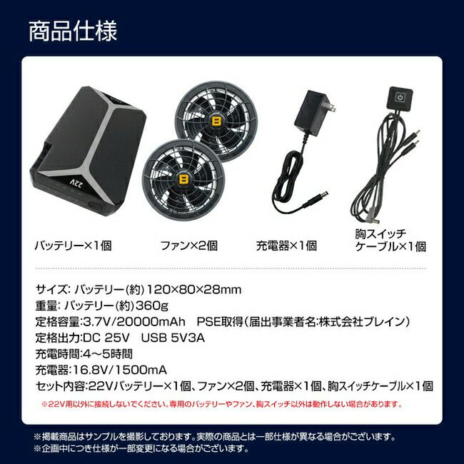 他の画像を見る 22Vバッテリー&胸スイッチ付きで圧倒的な快適!低騒音!高効率! BRAIN ブレイン 22Vデバイスフルセット | ファン バッテリー セット BR-2501 販売価格 ¥ 24,292 税込 在庫切れ 再入荷お知らせ お気に入りに登録する