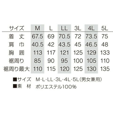 サイズ : M・L・LL・3L・4L・5L(男女兼用)